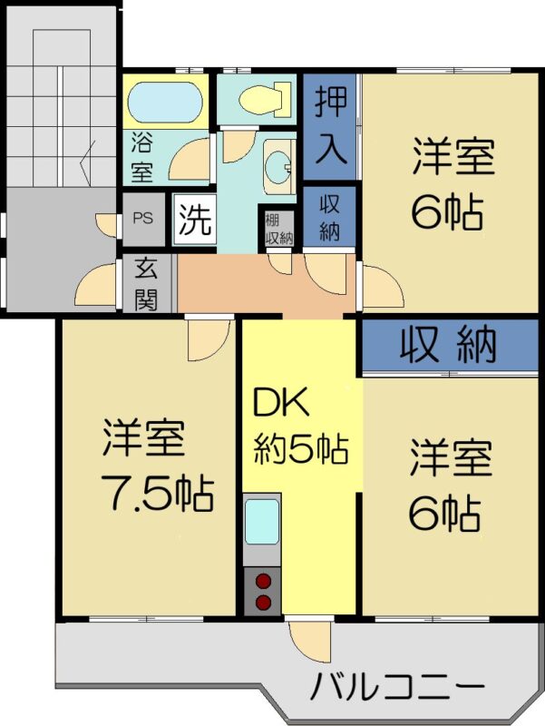 DK5畳 4階 1室 洋室6畳 4階 2室 洋室7.5畳 4階 1室 |